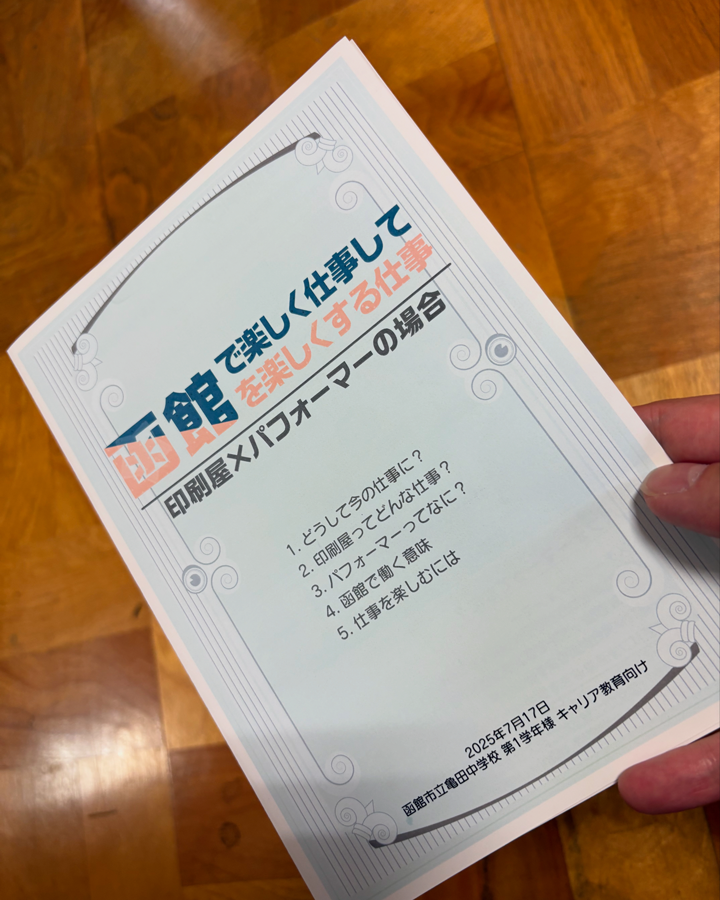 ありがたいことに本年度も函館市立亀田中学校様よりご依頼いただき、第一学年の生徒さんを対象としたキャリア講話をさせていただきました。